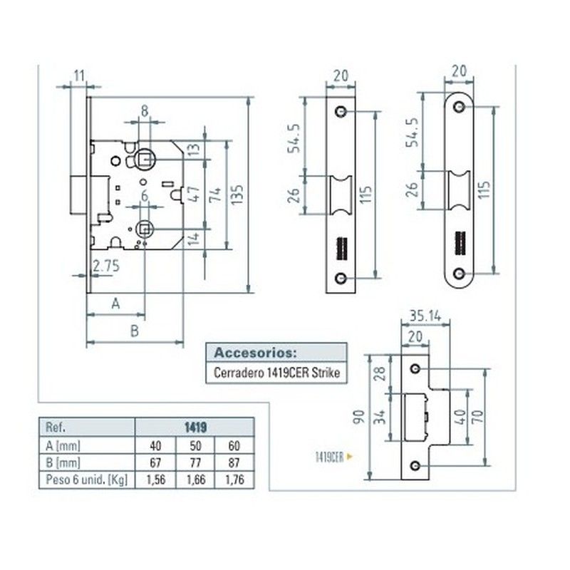PICAPORTE UNIFICADO 1419/40mm LATONADO